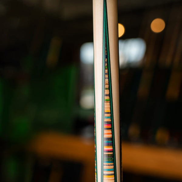 The McDermott CHOPSP2 is a limited-run Sneaky Pete cue that blends classic performance with bold, sustainable design. Crafted using recycled skateboard wood, each cue is a true one-of-a-kind piece — combining vibrant color patterns, unique grain layouts, and McDermott’s trusted playability.