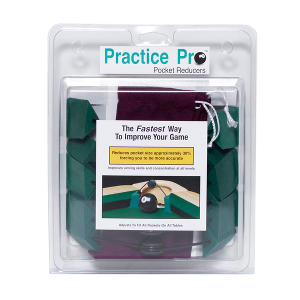 Manufactured from a specially engineered table-safe rubber compound, Practice Pro Pocket Reducers simulate the feel of a real cushion without excessive bounce-back. They are ideal for players of all skill levels, from beginners learning fundamentals to league and tournament players preparing for competition.