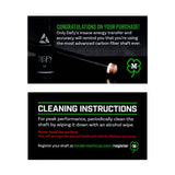 Defy carbon fiber shafts have a special finish that contains a slip agent. This helps keep the shaft slick and resists chalk, dirt, and hand oils from soiling the shaft. For peak performance, you may periodically clean the shaft by wiping it down with an alcohol wipe. The Cue Silk's Silky Hand Spray also works great with the Defy shaft. Apply spray to your bridge hand and rub briskly until dry for a friction-free stroke.
