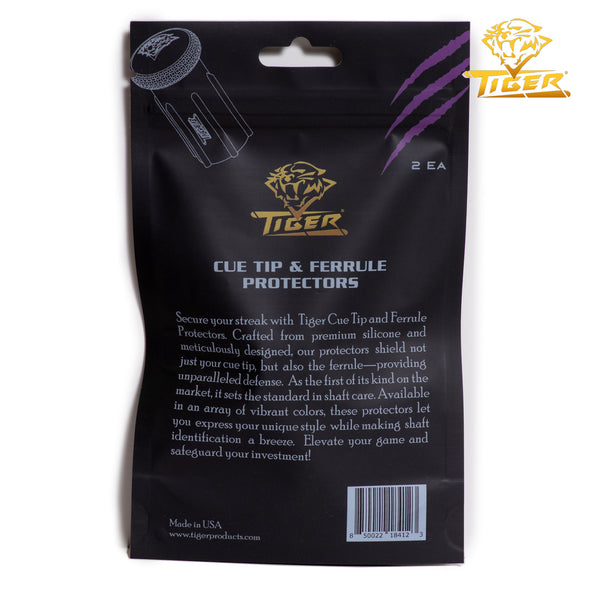 Protect your cue investment with the Tiger Cue Tip & Ferrule Protectors (2-Pack) — the first protectors on the market designed to shield both the cue tip and the ferrule. Made from high-grade silicone, these flexible guards slip on easily and provide a secure cushion against impacts, dirt, moisture, and accidental damage.