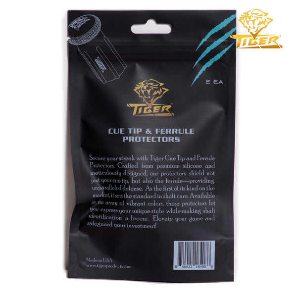Protect your cue investment with the Tiger Cue Tip & Ferrule Protectors (2-Pack) — the first protectors on the market designed to shield both the cue tip and the ferrule. Made from high-grade silicone, these flexible guards slip on easily and provide a secure cushion against impacts, dirt, moisture, and accidental damage.